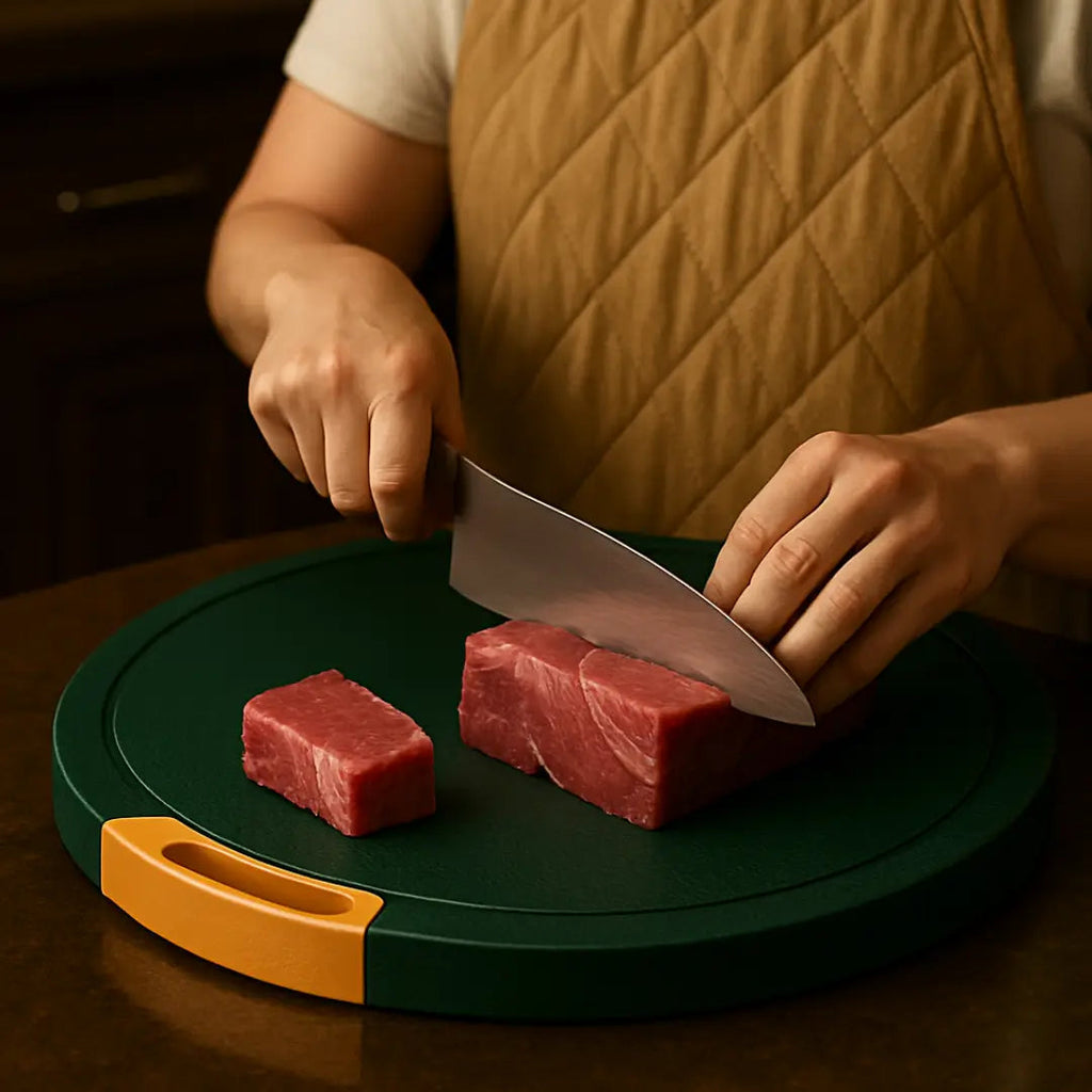 Ao contrário das tábuas tradicionais que racham, mancham ou soltam resíduos, a SafeCut® foi feita com um composto de alta resistência que evita desgaste mesmo com uso intenso. Nada de trocar de tábua a cada mês.