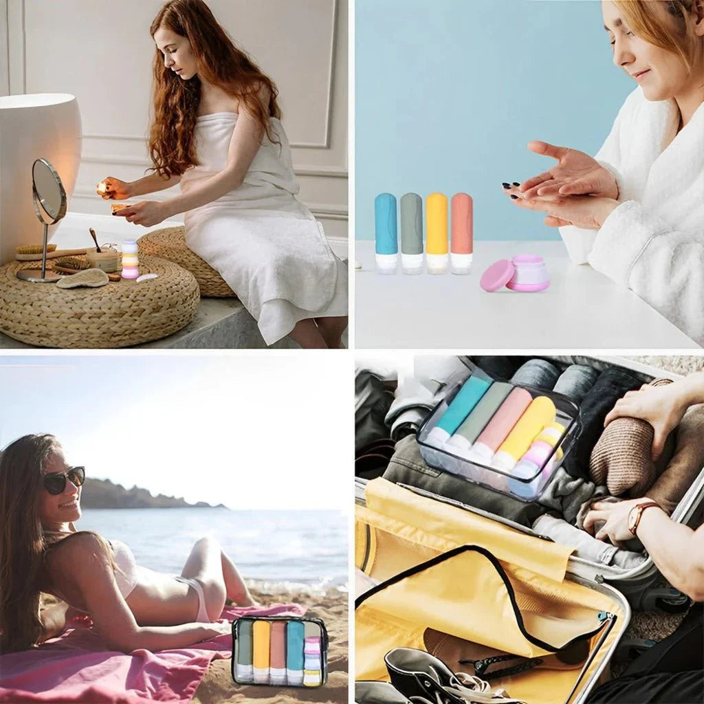 O Kit de Frascos de Silicone ideal para viagens, academia e o dia a dia
