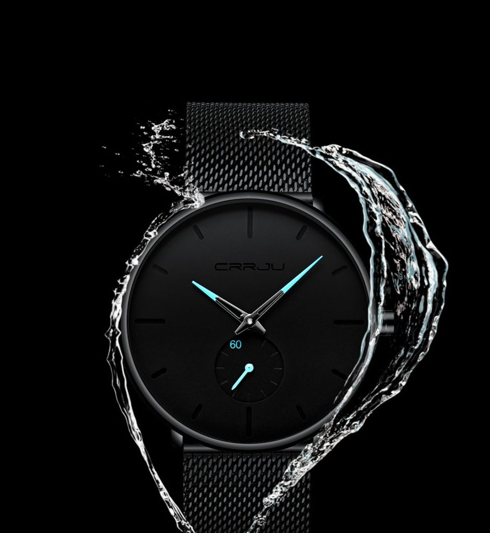 O Relógio CRRJU Slim Black une elegância, conforto e precisão em um design ultra fino e moderno
